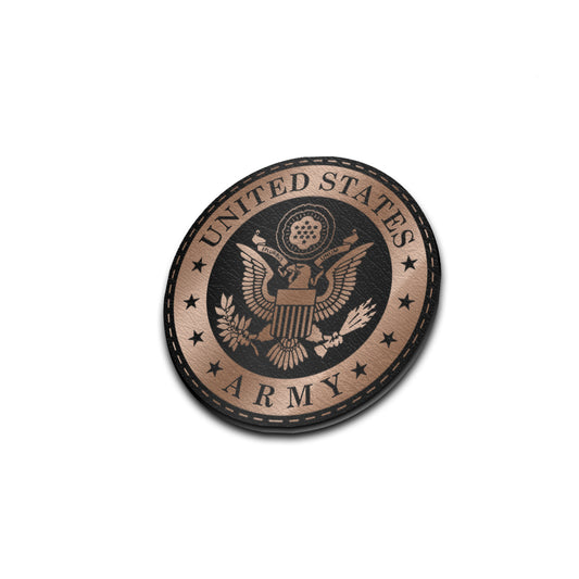 custom premium quality genuine leather patch trucker hat no minimum cheap cap beanie kaychain for business flat curved bill american bisonUS Army Patch