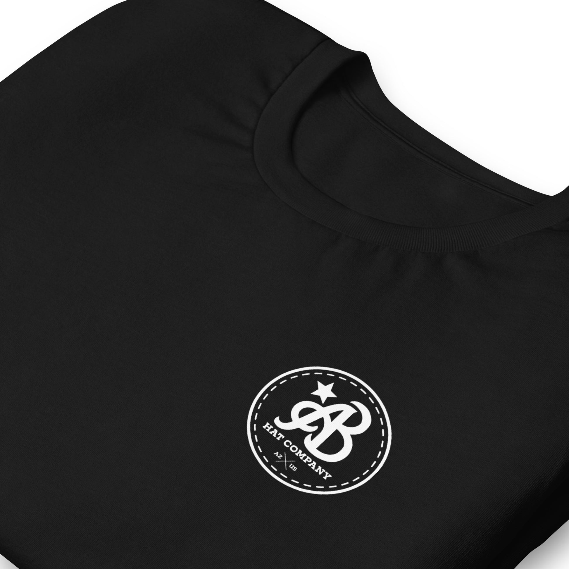 Look, this isn't your grandad's tee. Crafted from a poly-cotton blend that feels as good as it looks (and probably better than your last life decision), this black shirt sports our "AB" logo. But it ain't just a logo; it's a glowing, neon-sign fever dream, ready to haunt your late-night adventures and make anyone question if they've had one too many. Wear it if you're comfortable with being mildly unsettling.